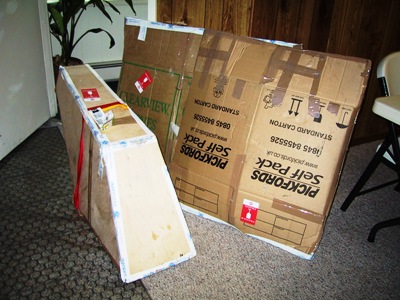 | The bike boxes made it, although they had been prized open at some point and then taped back together. Fortunately nothing was damaged. |
