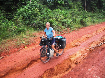 | There were still heavy rains on most days which left the road extremely slippery. We changed our tyres for off road type but progress was still very slow. |