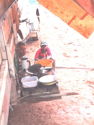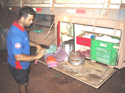 | One of the drivers, Valdeni, was appointed chief chef and he produced amazing meals from the ‘kitchen’ on the side of his truck. |