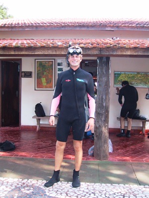 | One of the things that Bonito is famous for is its freshwater rivers which are incredibly clear. We hired some snorkels and wetsuits to have a look. |