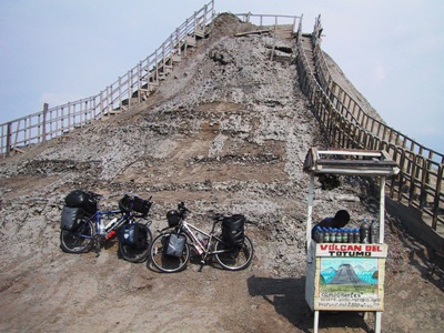 | The mud from this miniature volcano is acclaimed for its therapeutic properties. You can buy it in plastic containers or go for a dip in the crater. Half way through a hot days cycle, we decided to give it a miss. |