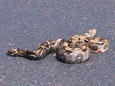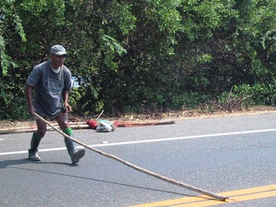 | We came across some locals who had caught a large snake. Snakes are usually viewed as pests and killed if spotted. They intended to beat it with a stick and push it into the path of oncoming cars. |