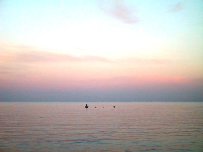 | The fishermen were out before sunrise closely followed by some pelicans hoping to steal the catch. |