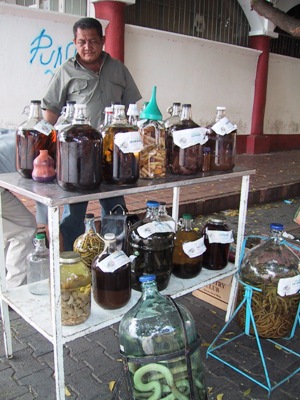 | Drinking small amounts of liquid from these jars of pickled snakes is said to cure many ailments. |